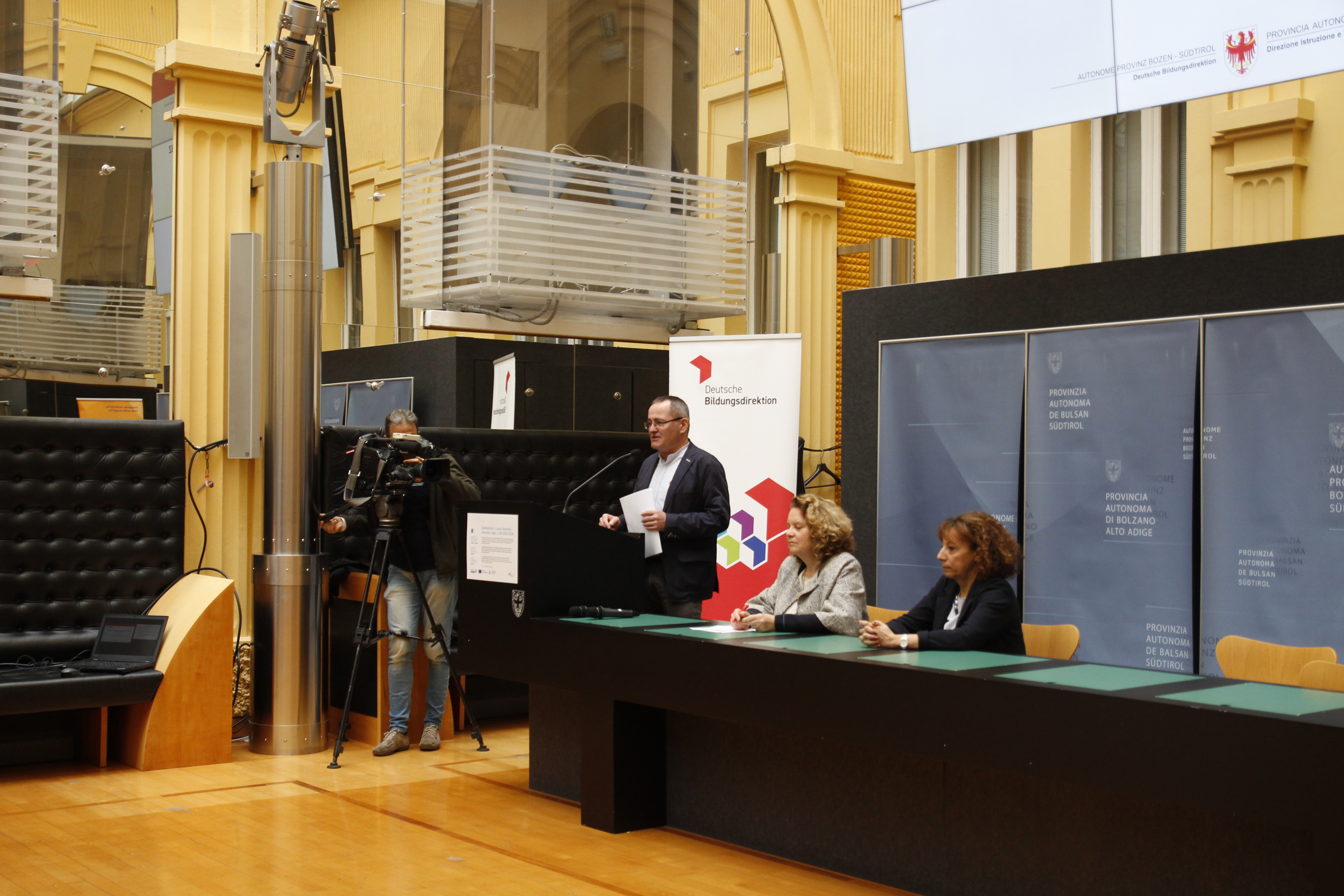 Der deutsche Bildungsdirektor Gustav Tschenett unterstrich eingangs die Besonderheit des von der Deutschen Bildungsdirektion initiierten Projektes, das in den Schuljahren 2024/2025 bis 2025/2026 mit rund vier Millionen Euro finanziert wird. Es handle sich um eine Premiere für die Deutsche Bildungsdirektion, sagte Tschenett, mit Verweis auf den komplexen und langen Arbeitsprozess, die zahlreichen Partner und die europaweite Ausschreibung, die für "LISE" erforderlich waren. "Wir starten im Schuljahr 2024/25 mit zwei großen Aktionslinien", informierte Tschenett. Über die europaweite Ausschreibung seien kompetente Partner für die Umsetzung gefunden worden. Dem pflichtete auch die für den Europäischen Sozialfonds zuständige Amtsdirektorin Claudia Weiler bei. Weiler betonte, dass sich die Ziele des Schülermobilitätsprojektes mit jenen des Europäischen Sozialfonds deckten, nämlich Schlüsselkompetenzen fördern und Schulabbrüchen entgegenwirken.