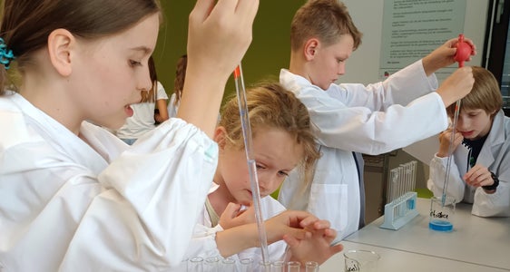 "Den Rätseln der Natur auf der Spur" war eine weitere Workshop-Gruppe. Die Workshop-Leitenden Margit Demetz und Michael Gamper bauten zusammen mit den Schülerinnen und Schülern verschiedenste Versuche im Labor auf und beobachteten physikalische und chemische Vorgänge. Dass sie im Workshop viele Experimente selbst ausprobieren durften, schätzten die Schüler und Schülerinnen besonders.