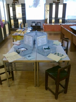 Unter anderem werden die Südtirol-Ausgabe des Zahlenbuchs mit Zusatzmaterialien aus der Bibliothek des Bereichs Innovation und Beratung und die Mathe-Wanderkisten ausgestellt.
