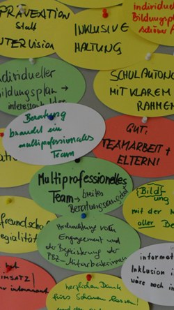 Nach einer kurzen Vorstellung der Struktur und der Aufgaben der Pädagogischen Beratungszentren durch die Leiterin Evelyn Matscher referierte die Integrationsberaterin Rosemarie Schenk über die inklusive Schule in Südtirol. Sie erläuterte den gesetzlichen und organisatorischen Rahmen und zeigte die Vernetzung mit anderen Diensten auf. Sie verwies auf die lange Tradition der Inklusion in Südtirol/Italien, verschwieg aber auch nicht die tägliche Herausforderung für alle Beteiligten. Der Individuelle Bildungsplan erschien den Gästen als ein besonders interessantes Instrument der Förderung.