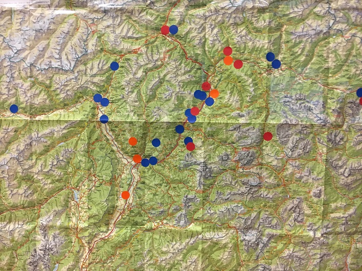 Über die Auseinandersetzung mit dem Thema hinaus, war es ein wichtiges Ziel dieser Veranstaltung die Vernetzung der Gesundheitsfördernden Schulen weiter zu unterstützen. Wie schon die Weltgesundheitsorgansiation in der Ottawa-Charta zur Gesundheitsförderung 1986 schrieb, ist die Vernetzung und Zusammenarbeit ein wichtiges Anliegen der Gesundheitsförderung. Um das Netzwerk sichtbar zu machen, wurden die Teilnehmer/innen gebeten, sich in einer Landkarte mit einem Punkt einzutragen. In verschiedenen Arbeitsgruppen hatten sie dann Gelegenheit, sich mit Kolleginnen und Kollegen anderer Schulen zu Themen wie Salutogenese und Kommunikation, salutogene Selbstregulation und emotionale Kompetenz etc. auszutauschen.