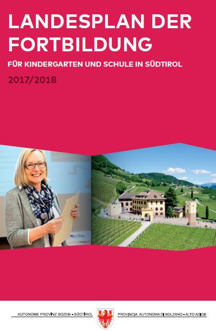 Innerhalb März 2017 wird der Landesplan der Fortbildung 2017/2018 an alle Schulsprengel und Kindergartendirektionen ausgeliefert. Den pädagogischen Fachkräften, Lehrpersonen aller Schulstufen und Schularten sowie Führungskräften steht wieder ein umfangreiches, bedarfs- und zukunftsorientiertes Fortbildungsprogramm zur Verfügung.