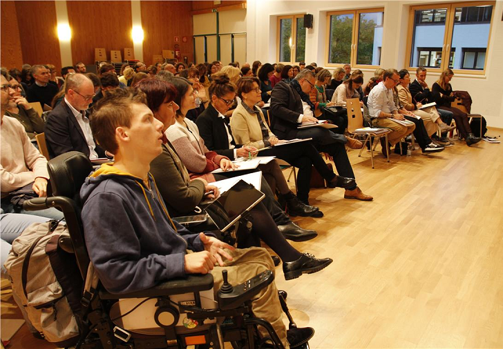 Franz Lemayr, ehemals Inspektor für Inklusion an der Deutschen Bildungsdirektion, sprach in seinem Impulsvortrag zum Thema "Inklusive Pädagogik, Menschenrechte und die Frage nach einer angemessenen Schule". Er betonte unter anderem, dass Inklusion ein Prozess sei, der nie ende. Oft reiche es auch, kleine Schritte in die richtige Richtung zu machen. Annemarie Kummer Wyss von der Pädagogischen Hochschule Luzern referierte zum Thema "Schnittstellen oder Nahtstellen? Damit Jugendliche zwischen Schule und Arbeit nicht zwischen Stühle und Bänke geraten".