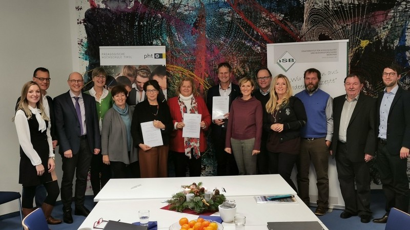 Die grenzüberschreitenden Schulentwicklungsgespräche zwischen Bayern, Südtirol und Nordtirol wurden am 13.12.2019 zwischen dem Rektor der Pädagogischen Hochschule Tirol (Mag. Thomas Schöpf), der Direktorin der Pädagogischen Abteilung in der Deutschen Bildungsdirektion Bozen (Dr.in Gertrud Verdorfer) und der Direktorin des Staatsinstituts für Schulqualität und Bildungsforschung München (Dr.in Karin E. Oechslein) mit dem Kooperationsvertrag 2020-2022 feierlich besiegelt.