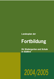 FortbildungsbroschüreDer Landesplan der Fortbildung 2004-2005 für Kindergarten und Schule wird in den nächsten Tagen an an alle Direktionen der Kindergärten, der Grundschulsprengel, der Schulsprengel, der Mittel- und Oberschulen sowie der Landesberufs- und Landesfachschulen geliefert.
