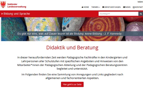 Schauen Sie hinein: http://www.provinz.bz.it/bildung-sprache/didaktik-beratung/unterstuetzungsangebote-in-corona-zeiten.asp