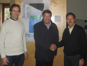 Un momento della festa per il pensionamento: (da sin.) Elmar Stimpfl, Alois Johann Renzler, Ernesto Scarperi