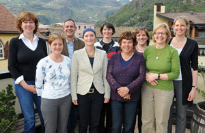 L'assessora Kasslatter Mur, Gudrun Schmid ed il direttore d'ufficio Klaus Nothdurfter con le responsabili dei Centri ELKI