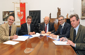 L’accordo sottoscritto a Palazzo Widmann da Durnwalder con il presidente della LUB Konrad Bergmeister e il rettore Waltder Lorenz – presenti anche il direttore della Laimburg Michale Oberhuber e il preside della facoltà di scienze e tecnologie Massimo Tagliavini – formalizza ufficialmente la pluriennale collaborazione nella ricerca scientifica già in atto tra le due istituzioni e incrementa i loro sforzi per consolidare la capacità dell’Alto Adige di attirare ricercatori e di far crescere le nuove leve. "Confidiamo che questa rafforzata sinergia e l’unione delle competenze nel settore della ricerca possano anche aumentare il peso specifico delle due istituzioni, sia nel contesto regionale che internazionale", ha sottolineato il presidente Durnwalder alla firma dell’accordo. "Senza dimenticare che lavorare assieme significa anche poter ottimizzare le risorse e coordinare le iniziative." La cooperazione scientifica e didattica si svilupperà negli ambiti della sperimentazione, del transfert tecnologico e dell’assistenza dei giovani ricercatori, tutti punti qualificanti che contraddistinguono le due istituzioni.
