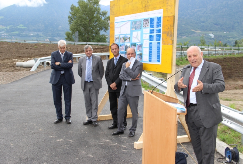 "Si era quindi resa necessaria una nuova soluzione tecnica per la viabilità - ha ricordato il presidente Luis Durnwalder durante il sopralluogo - approvata dalla Giunta provinciale con un investimento di 5,5 milioni di euro." Il nuovo progetto ha previsto il collegamento di via Palade alla corsia sud della MeBo nei pressi della cooperativa Cofrum, "con l'obiettivo di decongestionare dal traffico l'attuale la zona dell'allacciamento e di eliminare la fonte di pericolo", ha aggiunto l'assessore Florian Mussner. Per il traffico in provenienza da e verso Merano viene ridotto il percorso della nuova entrata e dell'uscita, mentre quelle esistenti vengono declassate e consegnate al Comune di Marlengo. Presidente e Assessore hanno ricordato inoltre che nel corso della costruzione delle rampe di accesso sono state installate a Marlengo anche nuove barriere antirumore e che non più tardi di dieci giorni fa la Giunta provinciale ha approvato nuove misure di tutela contro l'inquinamento acustico in tutta l'area circostante.