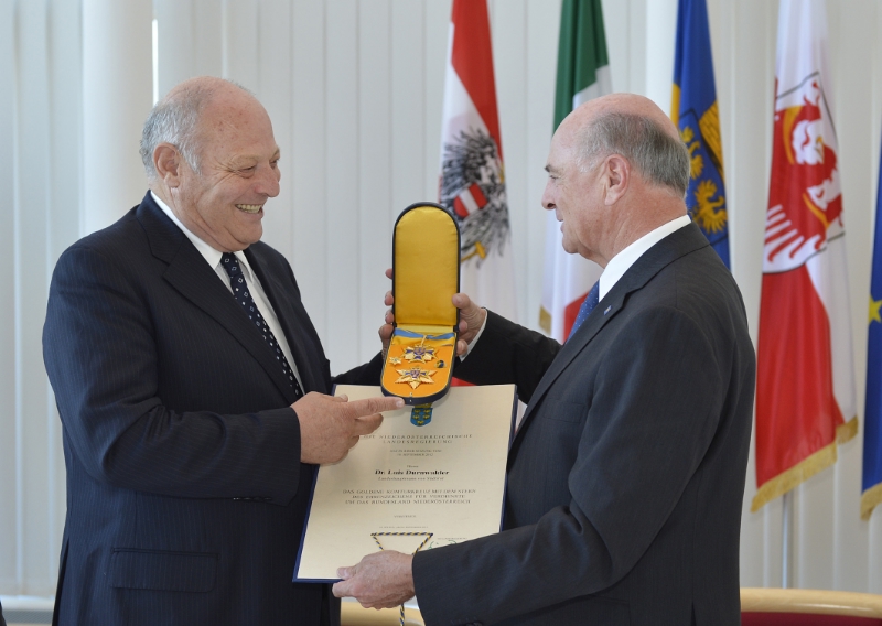 Con una cerimonia a St. Pölten il Land dell'Austria inferiore ha conferito oggi (28 settembre) la sua massima onorificienza al presidente della Provincia Luis Durnwalder. "Un riconoscimento a tutto l'Alto Adige per la proficua e pluriennale collaborazione tra le due regioni, specie nei rapporti in sede UE", ha sottolineato Durnwalder. Con il governatore Erwin Pröll ha discusso poi di progetti nei settori del mercato del lavoro e delle energie rinnovabili.