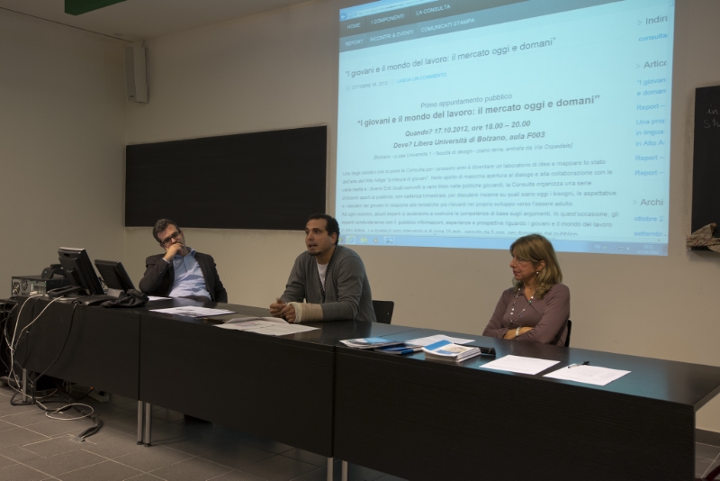 Ottimo esordio per la Consulta Giovani in lingua italiana per il suo primo incontro pubblico, svoltosi ieri mercoledì 17 ottobre 2012 presso la sede della LUB a Bolzano, che inaugura il trimestre dedicato ad approfondire il tema "I giovani e il mondo del lavoro".