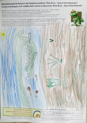 Naturalmente, entrambe le tracce facevano riferimento a reperti esposti nell'ambito di "Dino & Co. - Sauri delle Dolomiti", ovvero dinosauri e affini. Bastava poi utilizzare il foglio per comporvi, con la tecnica preferita e molta fantasia, il proprio disegno e rispedirlo al museo.