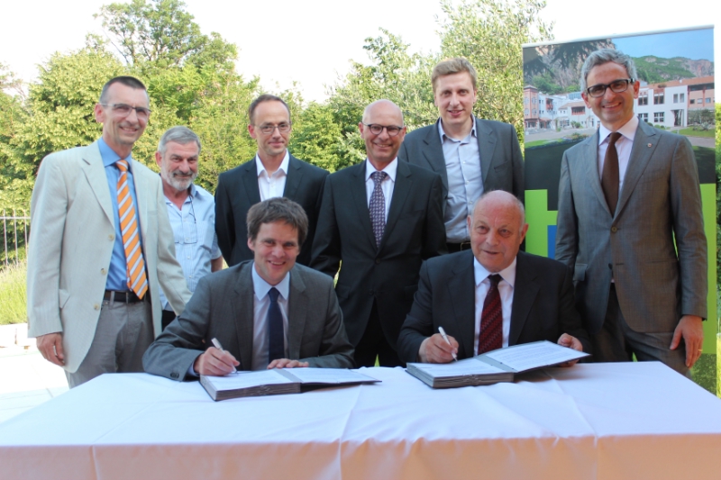 Il Presidente della Provincia Luis Durnwalder ed il dirigente del centro di ricerca svizzero Agroscope, Michael Gysi, al maso Ölleiten di Caldaro, ieri, lunedì 17 giugno 2013, hanno siglato un accordo quadro tra il Centro di Sperimentazione Laimburg ed Agroscope Changins-Wädenswil (ACW, Svizzera).