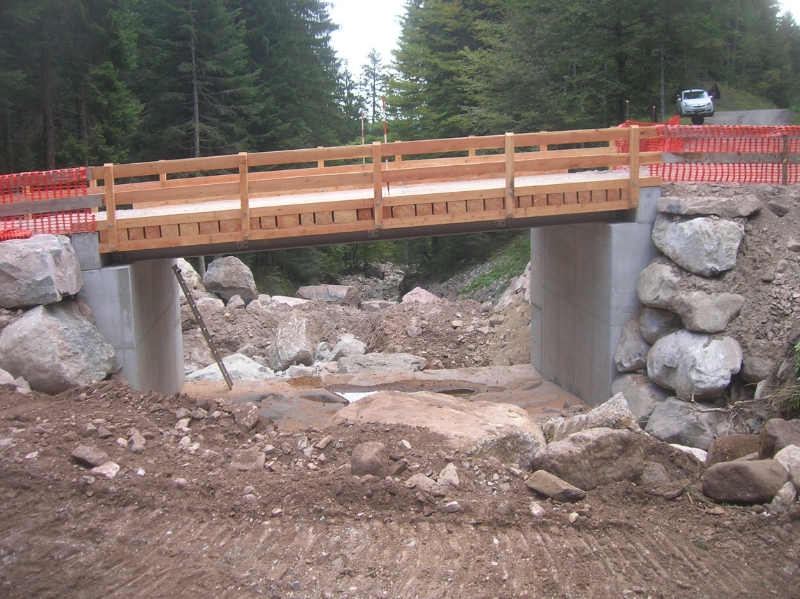 Su progetto del direttore dell'Ufficio sitemazione bacini montani Sud, Peter Egger, con un primo lotto di lavori vengono realizzate sei briglie di consolidamento di cemento armato sopra il cosiddetto ponte "Josele" all'altezza di Bagni di Caprile sulla strada di Passo delle Palade. Le briglie, realizzate per consolidare il letto del torrente, sono alte in media tre metri, hanno una larghezza di 25 metri e sono posizionate a circa 20 metri una dall'altra. Il tratto interessato è lungo circa 150 metri.