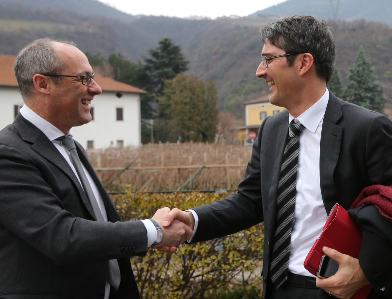 Dalla trattativa con Roma alla protonterapia, dal tunnel di base del Brennero al tema del credito. Questi e molti altri ancora sono stati gli argomenti al centro dell'incontro che si tenuto oggi (11 gennaio) a San Michele all'Adige fra i due presidenti Ugo Rossi e Arno Kompatscher. Un colloquio molto collaborativo, all'insegna di una rinnovata sintonia fra le due Province autonome di Trento e di Bolzano, che hanno confermato la volontá di affrontare congiuntamente le sfide comuni che coinvolgono il sistema delle autonomie speciali.