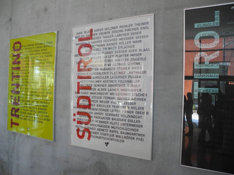 15 Studenti della Facoltà di Design e Arti della Libera Università di Bolzano hanno affrontato con creatività il tema Euregio Tirolo-Alto Adige-Trentino. Da questo lavoro sono nate 43 stampe serigrafiche che raccontano le peculiarità, le differenze e le analogie dell‘Euregio dal punto di vista sociale, culturale ed economico.