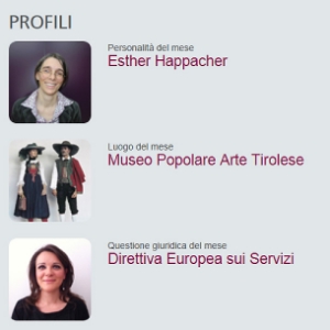 La "Personalità del mese" di gennaio 2014 è Esther Happacher, di origine Brissinese (Alto Adige) è docente e ricercatrice all'Istituto di Diritto Italiano all'Università di Innsbruck. Essa si muove senza disinvoltura nelle culture a Nord e a Sud del Brennero e vede nell'Euregio una cornice preziosa per il futuro benessere della popolazioni dei tre territori