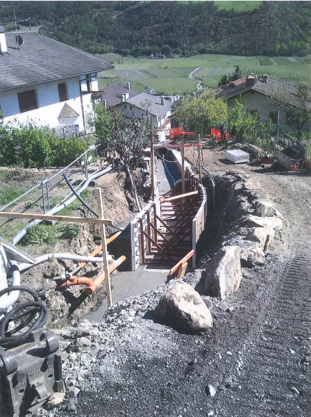 Partendo dalla strada statale con i primi 7 lotti di interventi sono già stati sostituiti i tubi di dimensione insufficiente e rifatto il selciatone nel tratto a monte del paese con lotti successivi. Con altri lotti è stato possibile rifare/finanziare completamente il selciatone presso la caserma dei Vigili del fuoco volontari e a monte della banca del paese. Lavori estremamente difficili, come fa presente il direttore della Ripartizione Opere idrualiche Rudolf Pollinger, perché in centro abitato, con carenza di strade d'accesso e con difficoltà di deviare l'acqua, presenza di confini di difficile definizione e in presenza di infrastrutture (tubi, muri, piante) che costituiscono ostacolo.