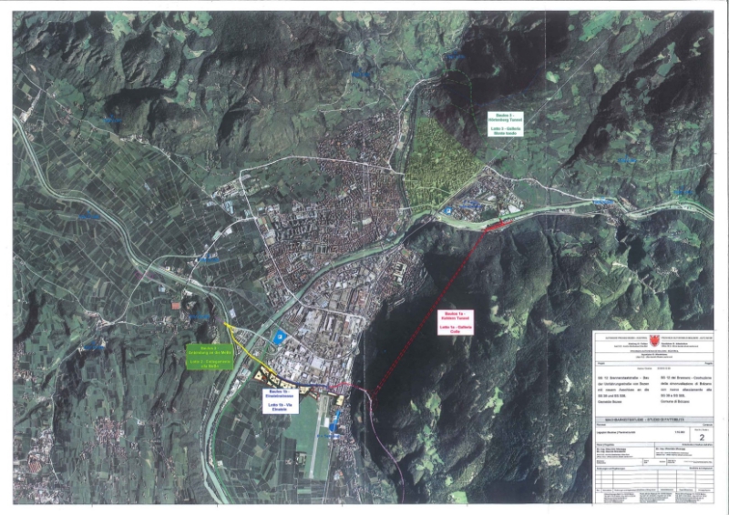 Dal punto di vista dell'edilizia stradale, la nuova circonvallazione di Bolzano prevede una suddivisione dell'opera in 4 lotti. Il primo riguarda la galleria sotto il Colle che unirà la zona di Maso della Pieve a Campiglio, con un costo stimato di 198.860.000 euro, mentre il lotto due consiste nell'interramento di via Einstein nel tratto compreso fra le rotatorie di via Galvani e via Buozzi per una spesa prevista di 26.140.000 euro. Ammonta a 55.165.000 euro, invece, l'investimento necessario per il terzo lotto, il quale prevede la realizzazione di un collegamento fra via Einstein e l'innesto della superstrada Merano-Bolzano con sovrappasso della rotatoria di via Keplero, nuovi viadotti e un ponte sul Fiume Isarco, ed è di 87.720.000 euro il costo dell'ultimo lotto con la galleria sotto il Monte Tondo che consentirà di raggiungere da Campiglio l'imbocco della Val Sarentino. Il totale dei costi previsti, dunque, è di 367.885.000 euro.