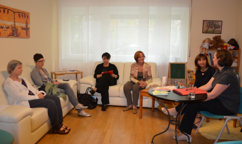 Il team composto da Hannelore Augschöller, Petra Kindler e Dietlinde Brauer ha guidato l'assessora Stocker e la direttrice dell'Ufficio giovani ed inclusione sociale, Petra Frei, nella visita alla struttura che può ospitare contemporaneamente 12 donne con i loro figli e nel corso del 2013 ha offerto protezione ed assistenza a 40 donne.