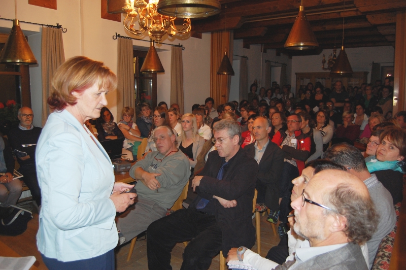 Sala gremita in ogni ordine di posti, all'Ospedale di San Candido, per parlare dei nuovi orientamenti della sanità altoatesina e, ovviamente, del futuro della seconda struttura sanitaria pusterese. Dopo aver illustrato il progetto e i criteri che guideranno il lungo percorso di riorganizzazione del settore in Provincia di Bolzano, l'assessore Martha Stocker si è soffermata sul concetto di "snellimento amministrativo" della sanità, ribadendo più volte il messaggio-chiave dell'incontro.