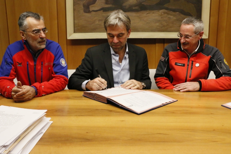 I presidenti di CNSAS e BRD, rispettivamente Lorenzo Zampatti e Toni Preindl, hanno ringraziato i responsabili della Ripartizione Protezione Civile, che era rappresentata in sede di firma della convenzione da Günther Walcher, direttore dell'Ufficio Protezione Civile, e da Karin Ainhauser, responsabile degli affari giuridici. Era presente anche il direttore di Dipartimento, Klaus Unterweger.