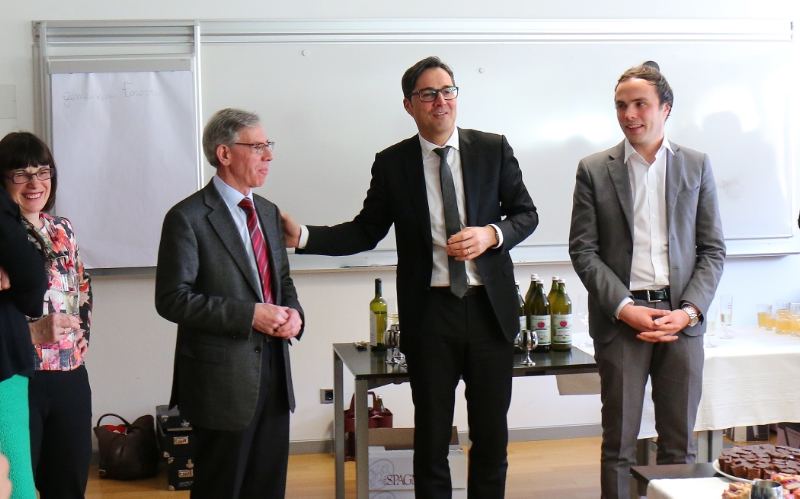 Nell'ambito della piccola festa organizzata per il pensionamento Günther Andergassen è stato salutato dall'assessore Achammer e dai suoi più stretti collaboratori, fra i quali la direttrice del Dipartimento, Vera Nicolussi-Leck, e la direttrice dell'Ufficio Orientamento scolastico e professionale, Rolanda Tschugguel. Al momento di commiato è intevenuto a sorpresa un ospite d'eccezione, il presidente della Provincia, Arno Kompatscher che ha espresso al neopensionato parole di elogio ed apprezzamento.