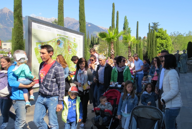 Circa 20 famiglie dell'Associazione sudtirolese delle famiglie numerose, hanno partecipato all'escursione annuale nei Giardini di Castel Trauttmansdorff e al Touriseum, che hanno accolto la piacevole invasione dei bambini. "Oltre alle numerose varietà di piante, per le famiglie nei Giardini vi sono molte stazioni sensoriali e tanti animali da vedere: capre, pecore, pappagalli e gli insetti e il terrario nella nuova serra", ha spiegato Heike Platter, direttrice marketing dei Giardini. Con il biglietto d'ingresso per famiglie, la visita guidata per famiglie e i Family Days "Primavera ai Giardini" e "Autunno ai Giardini", la struttura è in grado di creare offerte attrattive per un'escursione a misura di famiglia.