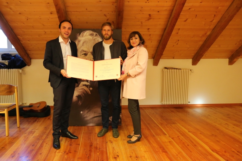All'artista tirolese Oliver Laric nell'ambito di una cerimonia presso il Municipio di Glorenza, oggi 25.09, gli assessori provinciali alal cultura Beate Palfrader (Land Tirol) e Philipp Achammer (Provincia di Bolzano) hanno consegnato il Premio Paul Flora 2015.