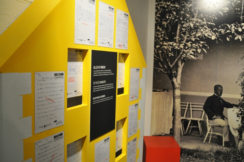 Nella rimessa di Castel Trauttmansdorff essa, prendendo spunto dagli avvenimenti tra il 1914 e il 1919, mostra varie sfaccettature del collegamento, apparentemente un po' strano, tra turismo e guerra. A ogni tema è associata una piccola casetta. Ed una di queste variopinte casette d'ora in poi ospiterà gli scritti creativi degli studenti, che nell'ambito dell'azione didattica si sono intensamente occupati con la Grande Guerra nella Regione Trentino-Alto Adige.