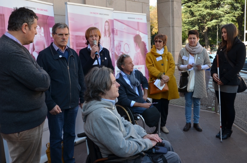 In occasione della giornata nazionale per l'liminazione delle barriere architettoniche, che annualmente si svolge la prima domenica del mese di ottobre, l'fficio provinciale Persone con disabilità, insieme alla Federazione per il Sociale e la Sanità, Indipendent L., Arche del KVW, il Centro Ciechi St. Raphael e l'lternverband hörgeschädigter Kinder ha organizzato stand di informazione presso varie stazioni.