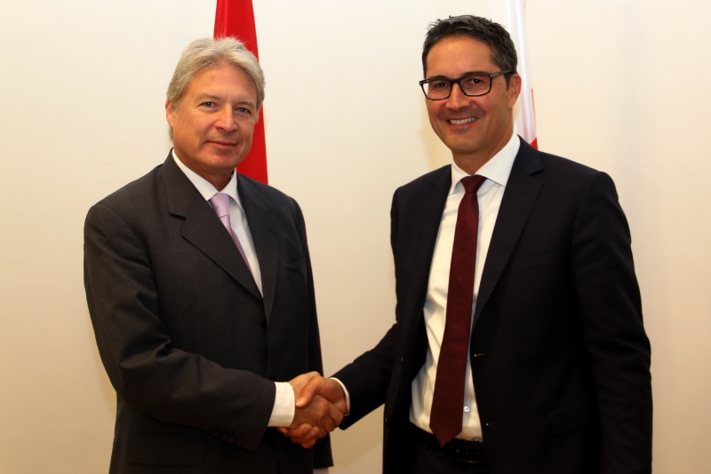 Autonomia, riforma costituzionale in Italia, profughi: questi alcuni dei temi discussi oggi (30 settembre) a Bolzano dal presidente della Provincia Arno Kompatscher con l'ambasciatore austriaco in Italia René Pollitzer.