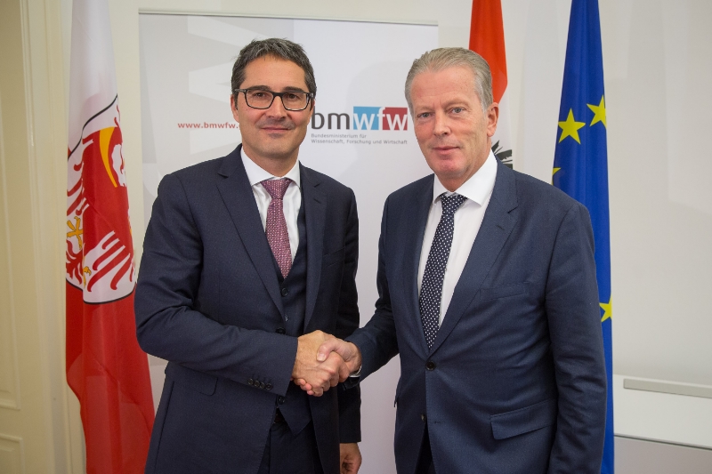 Durante l'incontro con il Vicecancelliere nonchè Ministro della ricerca scientifica, Reinhold Mitterlehner, invece, il primo tema affrontato è stato quello del riconoscimento dei titoli di studio in Italia alla luce della riforma varata dal governo di Vienna. "Molti altoatesini - ha sottolineato Philipp Achammer - svolgono per diversi motivi la formazione per maestro professionale in Austria, ma attualmente non vi è un riconoscimento automatico del titolo ottenuto. Il nostro obiettivo è quello di giungere ad una soluzione definitiva come quella riguardante l'esame di fine apprendistato in vigore dal 1999 per 77 mestieri". Discorso simile anche per la formazione degli insegnanti, con una commissione di esperti chiamata a trovare un punto di incontro fra le diverse soglie di accesso ai master previste da Italia e Austria relativamente ai crediti ECTS. "Stiamo lavorando da mesi sulla questione- ha aggiunto Achammer - e siamo vicini ad una soluzione che semplifichi il riconoscimento della formazione".