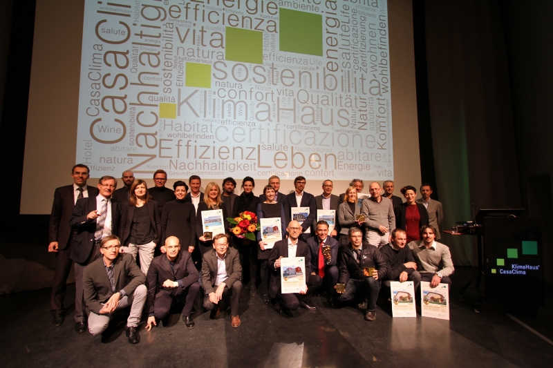 Due "cubi d'oro" sono stati assegnati a due nuovi edifici pubblici, il Centro di riabilitazione psichiatrica di Bolzano e l'ampliata Scuola alberghiera provinciale "Savoy" di Merano per l'attenzione agli aspetti progettuali e architettonici che, unita ad una corretta valutazione delle prestazioni energetiche, ha consegnato alla collettività ambienti di cura, di studio e di lavoro caratterizzati da una grande vivibilità e con elevati livelli di comfort. Per il risanamento energetico la giuria di CasaClima ha premiato Casa Pölt, un piccolo condominio nel centro di Monguelfo. Molto apprezzato il lavoro di recupero per conservare e valorizzare una residenza centenaria, rendendo possibile la sua trasformazione in un'abitazione di qualità, adeguata alle esigenze attuali. Per gli edifici del terziario il riconoscimento è andato alla ditta Hoval per la nuova sede a Zanica (Bergamo) grazie al percorso sinergico tra progettazione architettonica e sistema impiantistico che, nel rispetto del protocollo CasaClima Work&Life, ha reso Casa Hoval un esempio di luogo di lavoro sostenibile. Tra i premiati l'Hotel Aqualux di Bardolino, dove il percorso del protocollo ClimaHotel ha guidato i committenti a utilizzare tecnologie innovative per la riduzione dei consumi e individuare un modello gestionale sostenibile e rispettoso della cultura e delle tradizioni locali.