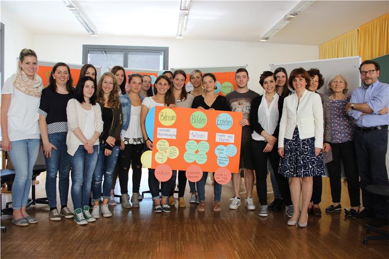 A tale proposito l'assessora Deeg ha riferito che i sindacati sono stati già sollecitati a discutere di contratti integrativi per una retribuzione maggiore. Inoltre, entro il 2016 sarà predisposta una migliore formulazione del profilo professionale e importante, secondo Deeg, sarà anche un monitoraggio qualitativo dell'offerta. Anche i Comuni dovranno compartecipare finanziariamente al potenziamento e allo sviluppo del servizio di assistenza all'infanzia. La classe dell'istituto ha raccontato delle esperienze pratiche vissute nel corso del percorso formativo: i presupposti essenziali per creare le giuste motivazioni sono l'entusiasmo nel rapporto con i bambini e buone condizioni di lavoro (gli spazi e l'ambiente). "Alla luce del crescente fabbisogno di strutture per l'assistenza all'infanzia, stiamo parlando di una professione che ha futuro", ha concluso l'assessora Deeg. Si tratta pertanto di continuare a puntare sulla qualità, di migliorare il quadro lavorativo del personale e di proseguire negli scambi puntuali con le scuole professionali.