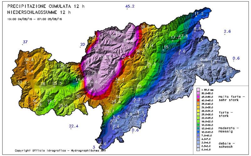 La centrale operativa della Protezione civile è in piena attività. Dalle prime ore della notte, infatti, l'Alto Adige è caratterizzato da una violenta ondata di maltempo, con precipitazioni di forte intensità che hanno provocato una serie di danni. Particolarmente interessate le zone del Burgraviato, della Val Passiria, della Val Ridanna e della Val d'Isarco. Oltre 100, sino ad ora, gli interventi effettuati dai Vigili del fuoco e dalla macchina dei soccorsi per frane e allagamenti.