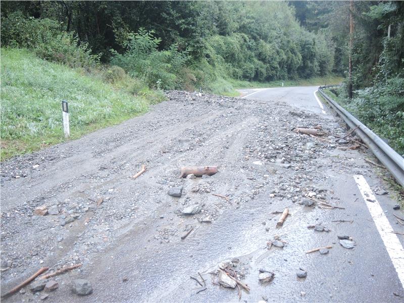 Circa 25 metri cubi di materiale aveva invaso la sede stradale della statale di Val Gardena nel tratto sottostante la località Tanurza nel comune di Laion nei pressi della centra elettrica "Prembach".