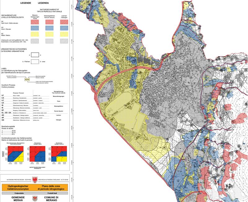 La stesura delle carte delle zone a rischio competerà, invece, all'amministrazione provinciale, che libera quindi i Comuni dell’incombenza. Le carte delle zone a rischio classificano i rischi anche in base alla presenza di persone, insediamenti, attività economiche, infrastrutture e beni culturali e ambientali nelle zone dove sono possibili eventi idrogeologici. La carta delle zone a rischio è quindi d’aiuto per determinare la fornitura di risorse di protezione civile o per la costruzione di strutture di protezione nonché per un confronto con la pianificazione delle zone di rischio a livello statale.