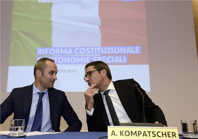 Il presidente Arno Kompatscher ha sottoscritto stasera a Udine – assieme alla presidente del Friuli Venezia Giulia, Debora Serracchiani, al presidente della Provincia di Trento Ugo Rossi e all’assessore alle riforme della Sardegna, Gianmario Demuro – la cosiddetta “Carta di Udine”. Il documento sul futuro delle autonomie nel tessuto della Costituzione è stato poi consegnato al ministro per gli affari regionali e le autonomie Enrico Costa, presente a Udine. Nella discussione sulla riforma costituzionale - hanno sottolineato Kompatscher, Serracchiani e Rossi - questo memorandum prefigura un impegno forte per il sistema delle autonomie speciali a cominciare dalla procedura di revisione dello Statuto con lo strumento dell’intesa, per cogliere fino in fondo le opportunità della riforma, se sarà realizzata. Per i Presidenti si pone come un punto di partenza per la riforma, "che dovrà essere un percorso di revisione senza arretramenti e arroccamenti."