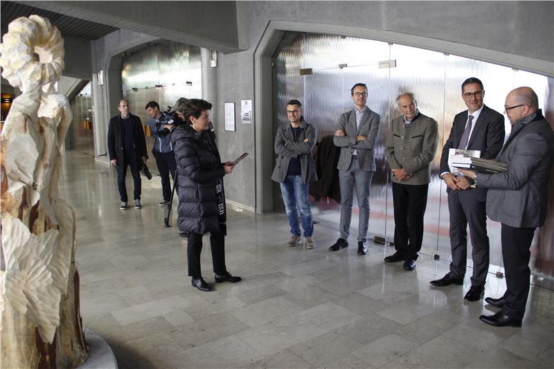 Nel mese di settembre, durante il terzo simposio di scultura lignea Toni Gross, il centro di Pozza di Fassa si è trasformato in un laboratorio artistico all'aperto. Undici artisti, suddivisi in due sezioni - artisti ospiti e ex studenti dell’Istituto d’Arte di Pozza - si sono cimentati per cinque giorni con un tronco di cirmolo interpretando il tema “Il mondo ladino nel patrimonio Unesco”. Lo scorso 10 settembre la giuria decretò come vincitori, per la categoria artisti ospiti, Carlo Abbà, e per la categoria Artisti ex studenti, Paolo Costazza. La giuria decise inoltre di assegnare una menzione all’opera, Musa, dell'ex studente Tomaso Baldassarra "per aver concepito un’opera che prevede un’interazione tra scultura e spettatore che va a colmare un vuoto spaziale offrendogli un punto di vista privilegiato e un’esperienza sinestetica alternativa". Ora questa statua è stata donata alla Regione Trentino Alto Adige/Südtirol, che è fra gli sponsor del simposio di scultura. La cerimonia di consegna è avvenuta stamani nella sede della Regione a Trento alla presenza del presidente, Arno Kompatscher, e dell'assessore alle minoranze, Beppe Detomas.