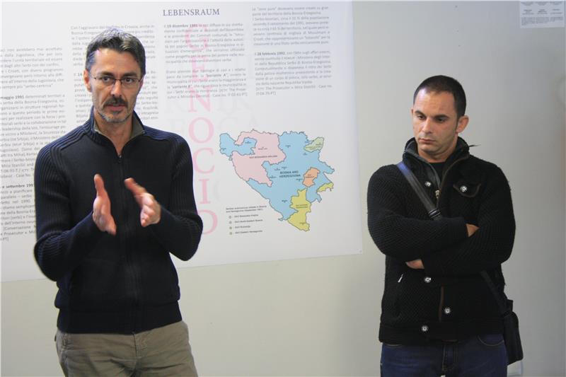 All’inaugurazione della mostra fotografica erano presenti questa mattina l’intendente scolastica, Nicoletta Minnei, la dirigente dell’istituto, Mirca Passarella, il docente Giovanni Accardo, che da anni è impegnato a far conoscere ai suoi studenti le vicende della guerra balcanica, l’autore della fotografie, Andrea Rizza Goldstein, e lo stesso Zijo Ribic, che all’epoca delle vicende aveva sete anni ed ora lavora come cuoco a Tuzla, un’altra città martire della pulizia etnica.