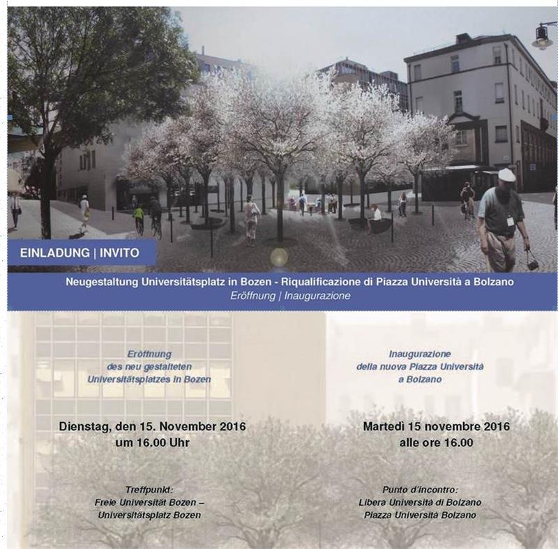 Inaugurazione nuova Piazza Università a Bolzano il 15 novembre