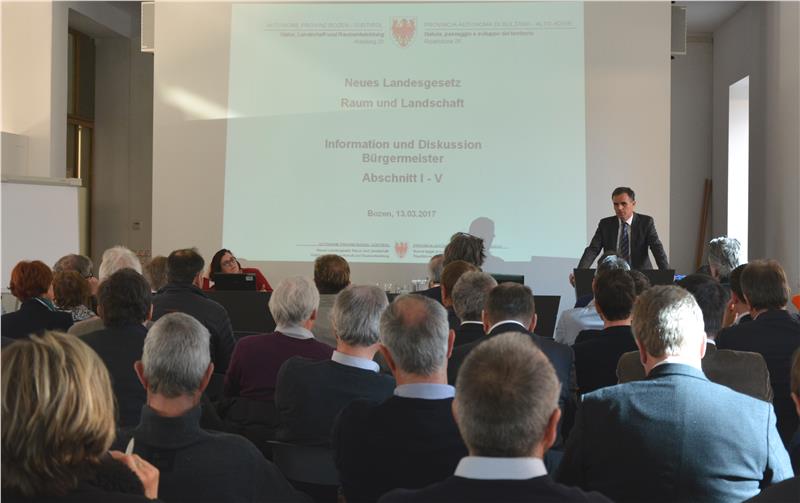 Ai Comuni, chiamati ad applicarlo, l'assessore provinciale Theiner e il presidente del Consorzio Schatzer hanno illustrato il ddl su territorio e paesaggio.