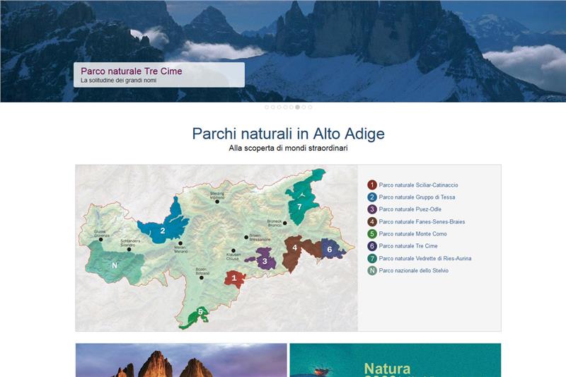 Sette parchi naturali, più la parte altoatesina del parco nazionale dello Stelvio. Ecco il "cuore" del nuovo portale web dedicato ai parchi naturali online da oggi (14 marzo) all'indirizzo parchi-naturali.provincia.bz.it. Si tratta di uno dei progetti più importanti all'interno del processo di riammodernamento e riorganizzazione della presenza internet dell'amministrazione provinciale, avviato nel 2015 con la nascita della nuova homepage www.provincia.bz.it e che sta proseguendo passo dopo passo con la realizzazione dei nuovi portali dedicati ai singoli temi. Grazie alla collaborazione tecnica di Informatica Alto Adige, il portale sui parchi naturali presenta un layout grafico moderno e accattivante, e può contare su un potente motore di ricerca interno e su un design responsive, ovvero sull'adattamento automatico della pagina allo strumento con cui si sta navigando (pc, tablet, smartphone, ecc.).