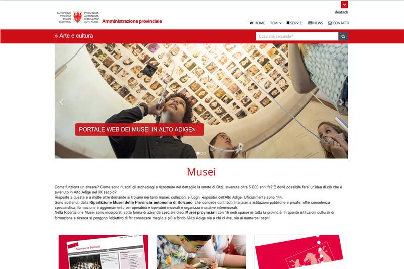 Tra i contenuti principali del sito tematico sui musei (www.provincia.bz.it/musei) spiccano una serie di progetti come la giornata internazionale, la lunga notte, i link al portale dei musei e dei beni culturali, Young & Museum e tutta la parte legata a formazione, aggiornamento e incentivi finanziari. Come tutti i nuovi siti web provinciali, anche quelli dedicati ai musei altoatesini possono contare su un design responsive che adegua automaticamente la visualizzazione della pagina allo strumento con il quale si sta navigando (laptop, pc, tablet, smartphone, lettore eBook o televisione). "Proprio un settore così orientato al pubblico come quello dei musei - commenta l'assessora all'informatica Waltraud Deeg - necessità di una presenza web al passo con i temi: si tratta di un altro importante passo in avanti nel più ampio progetto di riorganizzazione e ammodernamento di tutti i portali internet della Provincia di Bolzano".