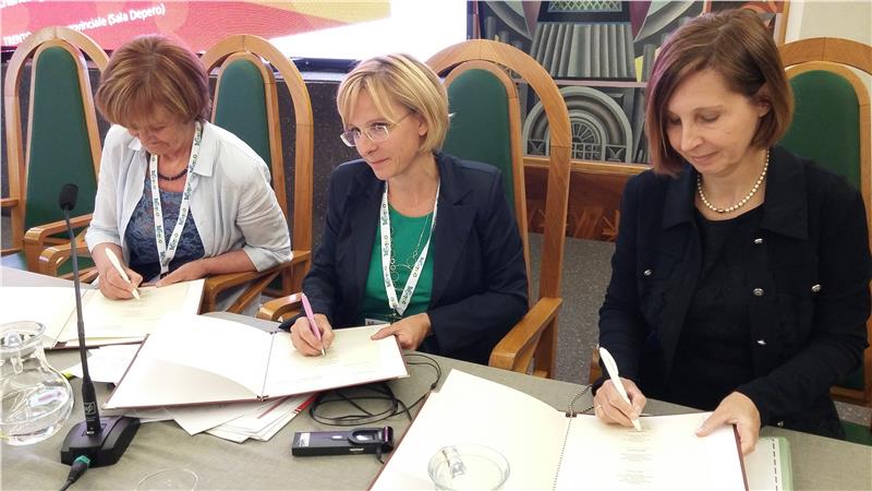 Occupazione e conciliazione tra famiglia e lavoro, violenza di genere, differenze di genere nella medicina, partecipazione politica: sono questi gli ambiti di lavoro comune individuati nella risoluzione firmata ieri (15 giugno) a Trento all’interno dei lavori dell’assemblea Euregio delle rappresentanti politiche elette in Trentino, Alto Adige e Tirolo. L’assessora trentina Sara Ferrari ha presentato l’esperienza delle “Co-manager”, ha parlato di conciliazione e condivisione del lavoro di cura all’interno delle famiglie, con gli incentivi al congedo dei padri, di violenza di genere e delle norme che la contrastano e la prevengono. Ha illustrato inoltre la nuova legge elettorale provinciale, in particolare sulla doppia preferenza di genere. L’assessora Martha Stocker, per l’Alto Adige, ha parlato in particolare delle novità delle quote rosa nei Cda delle società pubbliche, delle esperienze in ambito di medicina di genere, di solidarietà e di contrasto alla violenza, ma anche di partecipazione politica femminile. "I lavori dell’assemblea - ha detto la Stocker - sono un modo per esprimere un’idea di Europa, che deve essere unita, forte e solidale". L’assessora tirolese Gabriele Fischer, invece, ha evidenziato quanto si faccia in Tirolo nel settore ricerca e formazione per la medicina di genere.