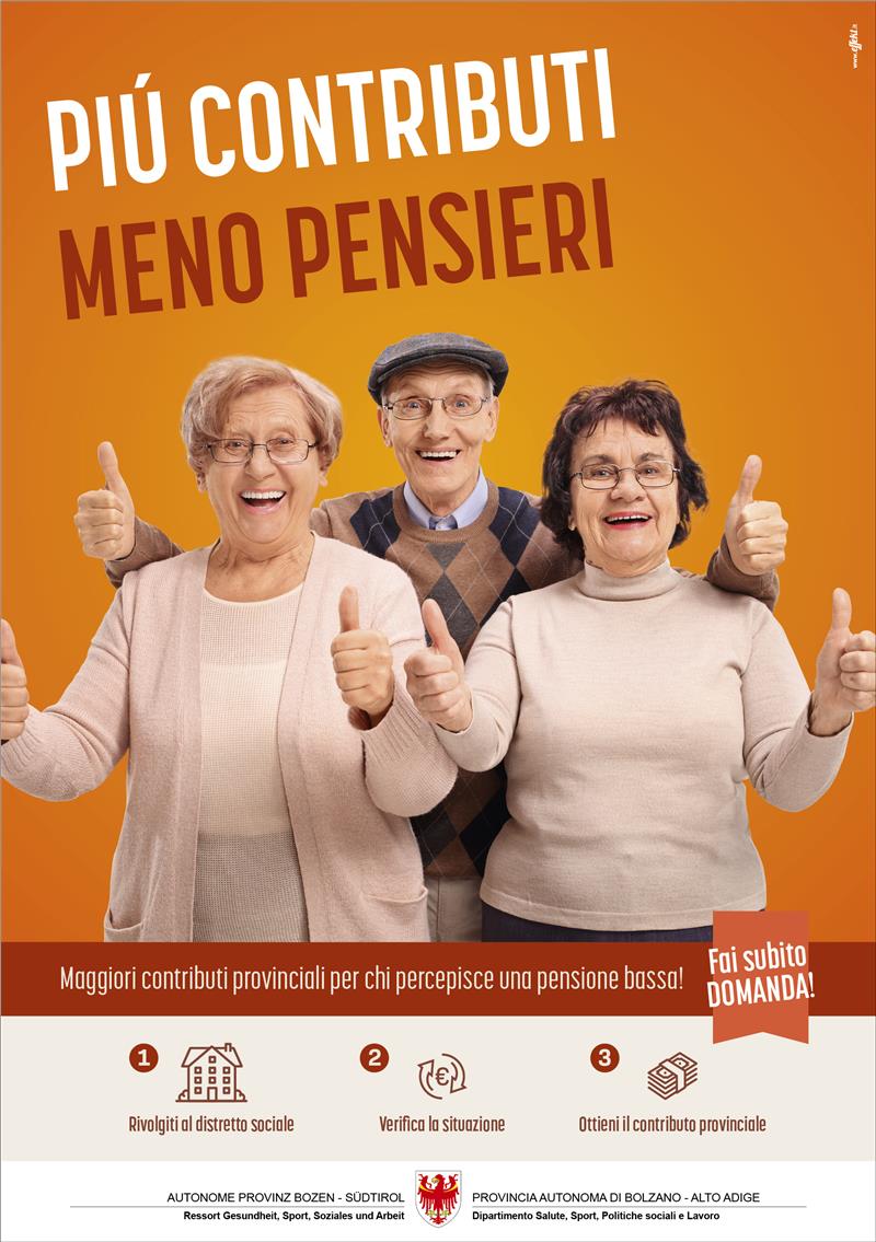 Dal 21 luglio è possibile presentare le domande di contributo per il sostegno alle pensioni più basse presso la sede del proprio Distretto sociale. Si tratta di una misura della Provincia per sostenere i redditi delle persone anziane che percepiscono una pensione bassa.