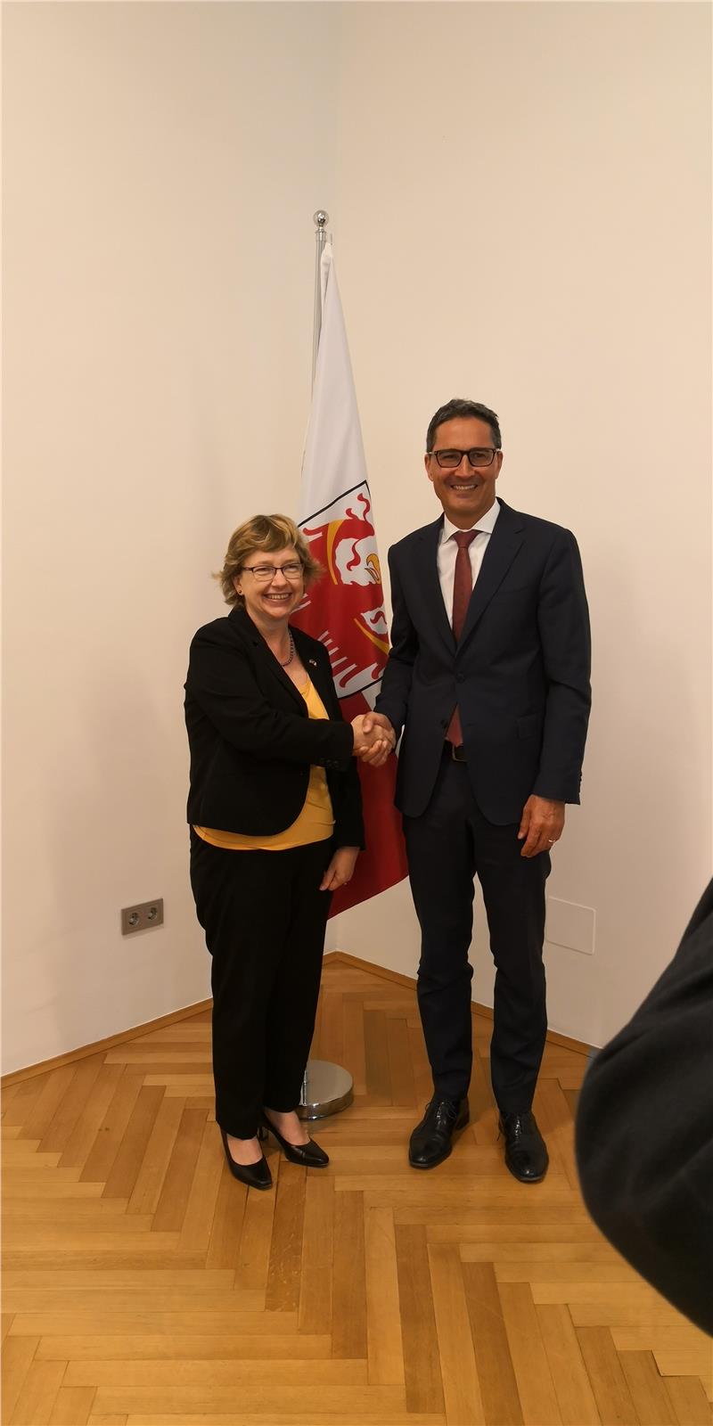"Il consolato generale degli Usa in Italia è pronto a fare da punto di contatto per le aziende altoatesine interessante a investire o a esportare negli Stati Uniti". Questo il messaggio lanciato dalla console generale Usa in Italia Elizabeth Lee Martinez nei confronti dell’Alto Adige e della sua economia nell’ambito dell’incontro che oggi (20 luglio) l’ha vista protagonista di una visita ufficiale al presidente della Provincia Arno Kompatscher. Il presidente ha introdotto all’ospite la realtà locale facendo cenno alla situazione economica, all’evoluzione storica e alle particolarità del territorio. "E’ importante che le nostre aziende possano continuare a portare sul mercato i prodotti nei quali eccelliamo come quelli delle tecnologie alpine e per la lavorazione del legno. Per questo l’incontro di oggi rappresenta un’occasione importante per confermare la reciproca collaborazione in questo senso, a garanzia di una sempre maggiore espansione delle imprese altoatesine verso il mercato statunitense" ha sottolineato Kompatscher. Un ulteriore terreno di collaborazione fra Alto Adige e Stati Uniti riguarda il turismo, con gli arrivi da oltreoceano che nel 2017 hanno fatto registrare un incremento del 7,2% degli arrivi e del 7,7% delle presenze rispetto al 2016. Della delegazione facevano parte anche John Crosby, console per gli affari politici ed economici, Alessia Pastorutti, political specialist e Camillo Rusconi, digital media specialist del Consolato Usa a Milano.