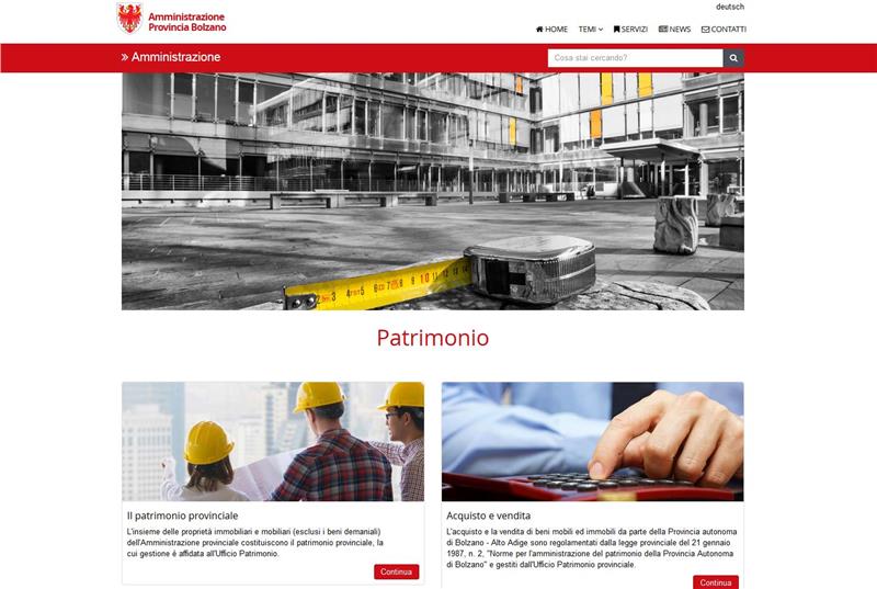 Come tutti i nuovi portali web della Provincia, anche quello dedicato al patrimonio può contare su un potente motore di ricerca interno che consente di trovare i contenuti desiderati in maniera rapida ed efficiente, nonchè su un design responsive che adatta automaticamente lo schermo allo strumento con il quale si sta navigando (pc, tablet, smartphone, ecc.). Il nuovo portale web della Provincia dedicato al patrimonio è frutto della collaborazione fra Ripartizione amministrazione del patrimonio, (Ufficio manutenzione opere edili, Ufficio estimo ed espropri, ufficio patrimoni) e Informatica Alto Adige.